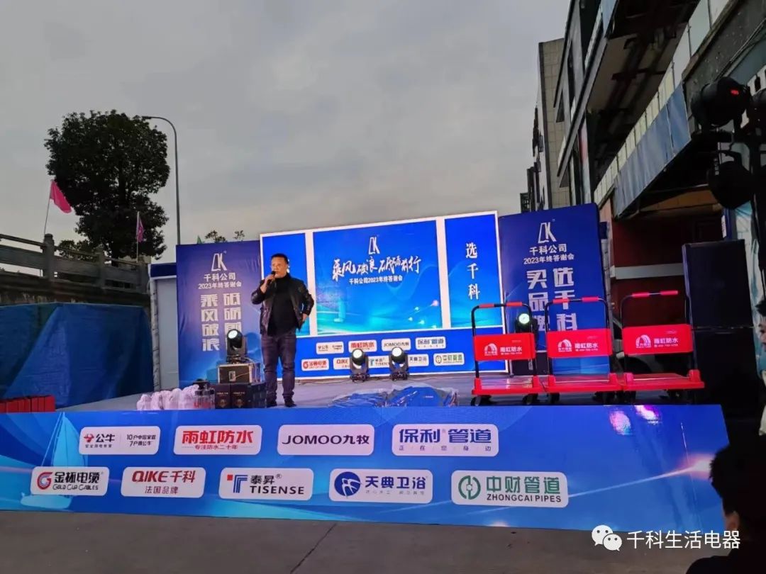 2023年12月10日,重慶云陽(yáng)千科建材年終答謝晚宴活動(dòng)圓滿舉行,來(lái)自云陽(yáng)各地的千科分銷商和當(dāng)?shù)芈?lián)盟的三工師傅出席盛宴。答謝會(huì)的圓滿舉辦,進(jìn)一步擴(kuò)大了千科建材在云陽(yáng)地區(qū)的影響力,為接下來(lái)的建材零售渠道發(fā)展提供了更堅(jiān)實(shí)的保障。